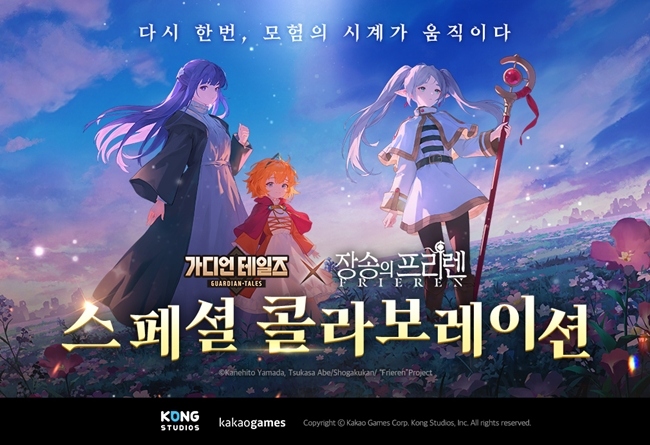 카카오게임즈(대표 한상우)가 27일, 미국 개발사 콩 스튜디오(대표 원(Won))가 개발한 모바일 RPG '가디언 테일즈'에 '장송의 프리렌'과의 1차 콜라보레이션을 진행한다...