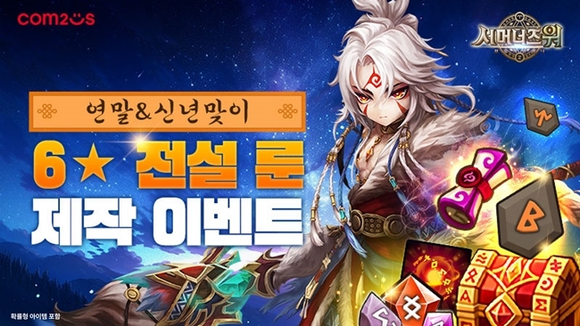컴투스(대표 남재관)가 연말연시를 맞아 '서머너즈 워: 천공의 아레나(이하 서머너즈 워)'에서 6성 전설 룬 제작 이벤트를 실시한다. 이번 이벤트는 2025년 1월 26일까지...