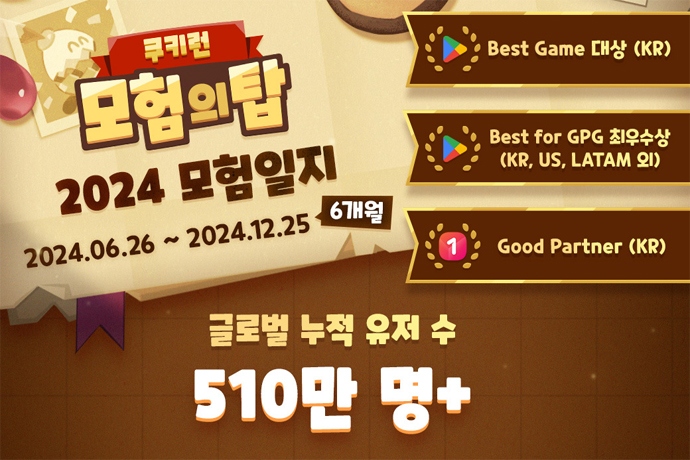 데브시스터즈(주)(대표 조길현)의 개발 스튜디오 오븐게임즈(주)(대표 배형욱)가 개발한 ‘쿠키런: 모험의 탑’이 ‘2024 모험일지’를 공개하고 작년 6월 출시 후 반년...