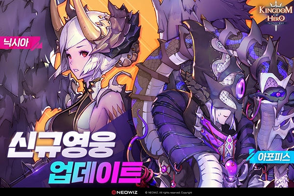 네오위즈(대표 문지수)가 자사가 서비스하는 모바일 전략 RPG '킹덤 오브 히어로: 택틱스 워'에서 빛/어둠 속성의 영웅을 업데이트했다. 이번 업데이트를 통해 게임 출시...