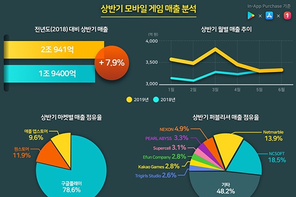 올해 상반기 모바일 게임 매출이 2조원을 넘기며 동기 기준 역대 최대치를 경신했다. 국내 대표 모바일 빅데이터 플랫폼 기업 아이지에이웍스(대표 마국성, IGAWorks)가 ...