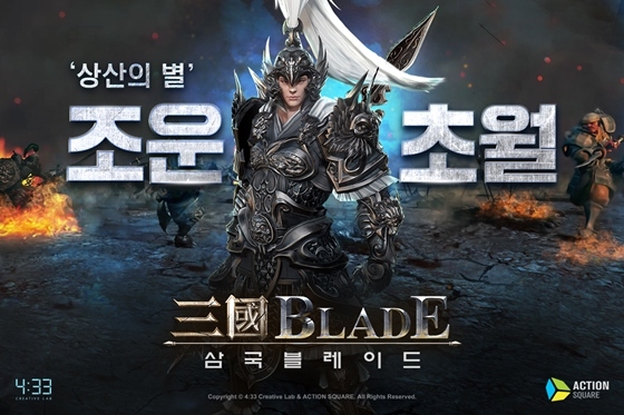 네시삼십삼분(대표 한성진, 이하 4:33)이 자사가 서비스중인 모바일 수집형 RPG '삼국블레이드'(개발사 액션스퀘어)에 촉나라 진영의 4성 장수 '조운'을 초월 장수로 업...