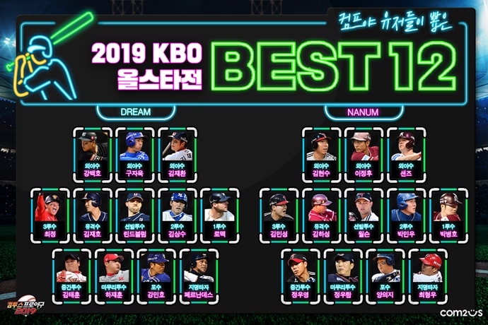 컴투스(대표 송병준)는 자사가 개발하고 서비스하는 3D 모바일 야구 게임 '컴투스프로야구2019'(이하 컴프야2019) 유저들을 대상으로 '2019 KBO 올스타전' 베스트 라인업...