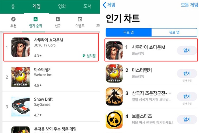 조이시티(각자대표 조성원, 박영호)는 모바일 액션 MMORPG '사무라이 쇼다운 M'이 구글 플레이 인기 급상승 1위를 달성하며, 양대 마켓에서 높은 인기를 얻고 있다고 15...
