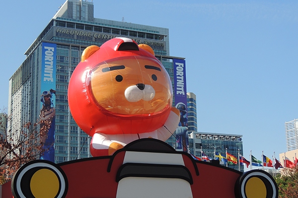 카카오게임즈가 15일부터 18일까지 부산 벡스코에서 진행되는 '지스타 2018'에서 자사가 서비스 중인 모바일 레이싱 게임 '프렌즈레이싱'의 부스를 마련하고 유저들이 참...