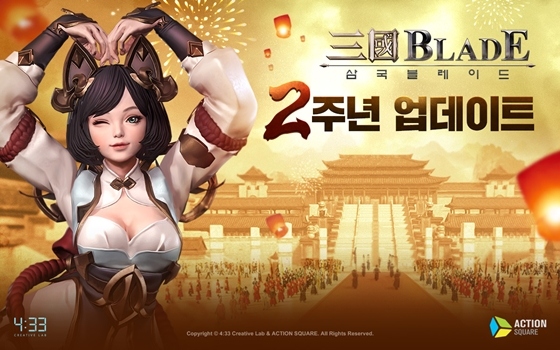 네시삼십삼분(대표 한성진, 이하 4:33)이 모바일 수집형 RPG '삼국블레이드'(개발사 액션스퀘어)의 서비스 2주년을 기념하는 인포그래픽을 공개하고 업데이트를 진행했다...