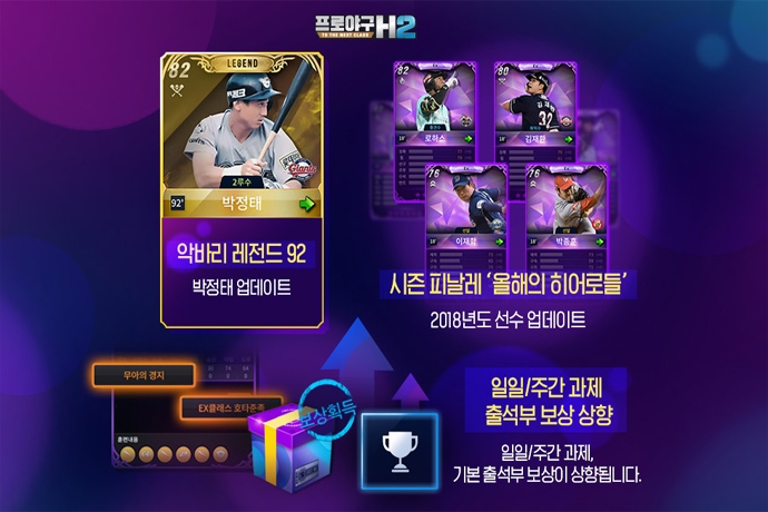 엔씨소프트(대표 김택진, 이하 엔씨(NC))의 모바일 야구 매니지먼트 게임 '프로야구 H2'가 내일(8일) '18년도 선수카드를 업데이트 한다. 이용자는 올해 한국프로야구에...