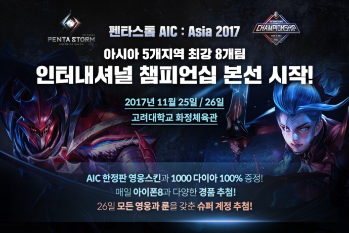 OGN이 생중계하는 넷마블게임즈의 모바일 MOBA '펜타스톰 for kakao'의 국제 e스포츠 대회 'Arena of Valor International Championship: Asia 2017 (이하 AIC Asia 2017...