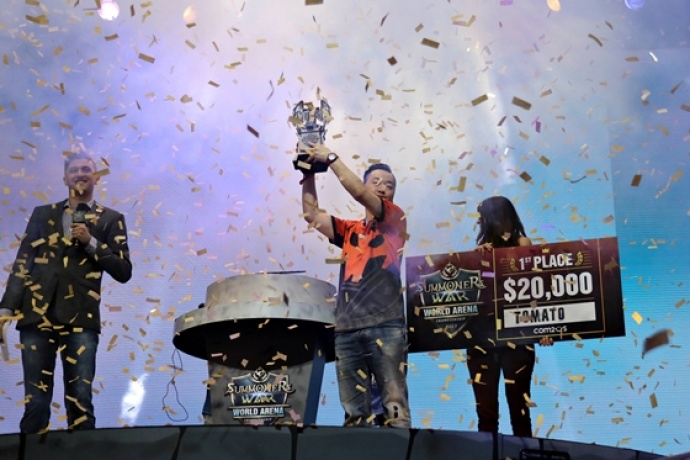 SWC 상하이 대표 토마토(Tomato)가 '서머너즈 워 월드 아레나 챔피언십(SWC) 2017'의 우승컵을 거머쥐었다.25일(미국 현지 기준) 미국 로스앤젤레스 마이크로소프트 씨어...