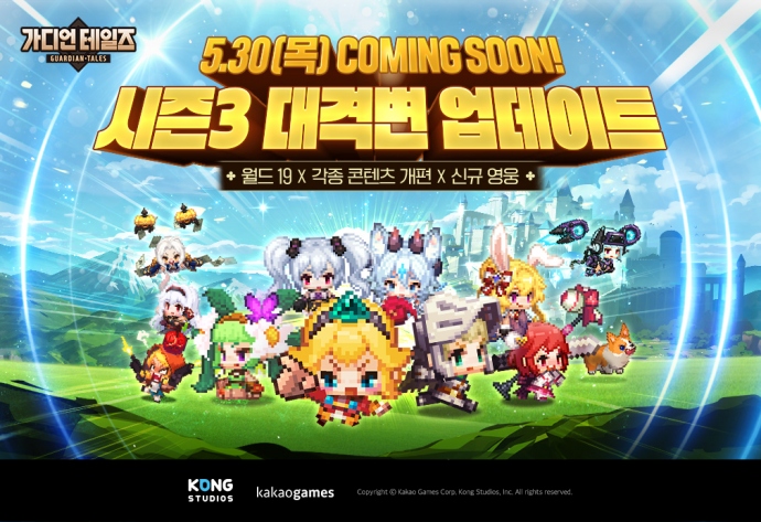 카카오게임즈(대표 한상우)가 16일, 미국 개발사 콩 스튜디오(대표 원(Won))가 개발한 모바일 RPG ‘가디언 테일즈’의 시즌 3 업데이트 사전등록을 시작했다. 시즌 3 업...