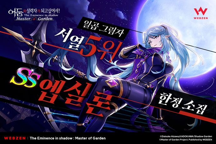 (주)웹젠(대표 김태영)이 서브컬처 게임 '어둠의 실력자가 되고 싶어서!: Master of Garden(이하 어둠의 실력자가 되고 싶어서!)'에서 신규 캐릭터 '일곱 그림자 서열 5...