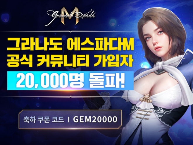 한빛소프트가 자사에서 개발하고 서비스하는 모바일 MMORPG '그라나도 에스파다M'의 공식 카페 회원 수 2만 명 돌파를 기념해 감사 쿠폰을 배포했다. 유저들은 게임 내 ...