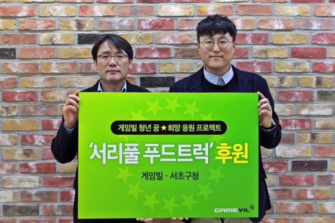 게임빌이 청년 꿈, 희망 프로젝트인 서초구청 '서리풀 푸드트럭' 후원자로 나섰다.게임빌 측은 서초구청을 방문하여 후원금을 전달했다고 밝혔다. 게임사와 지역 사회가 ...