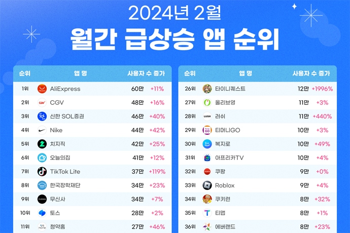 아이지에이웍스가 자사 데이터 분석 솔루션을 활용해 작성한 아이지에이웍스 마케팅클라우드 <월간 인기 모바일 앱 순위> 리포트를 공개했다. 이번 보고서는 아이...