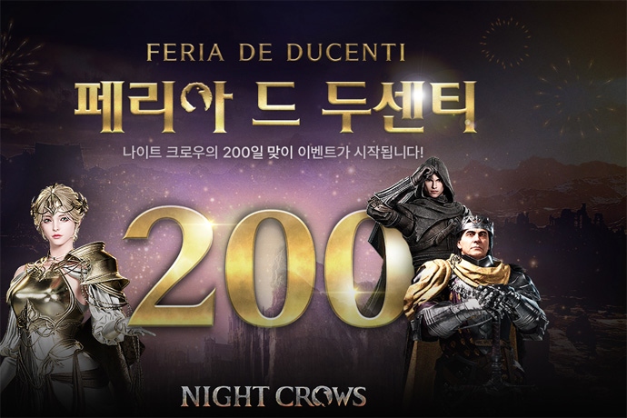 ㈜위메이드(대표 장현국)가 서비스하고 매드엔진(공동대표 손면석, 이정욱)에서 개발한 대작 MMORPG <나이트 크로우>가 서비스 200일 기념 이벤트 '페리아 드 두센...