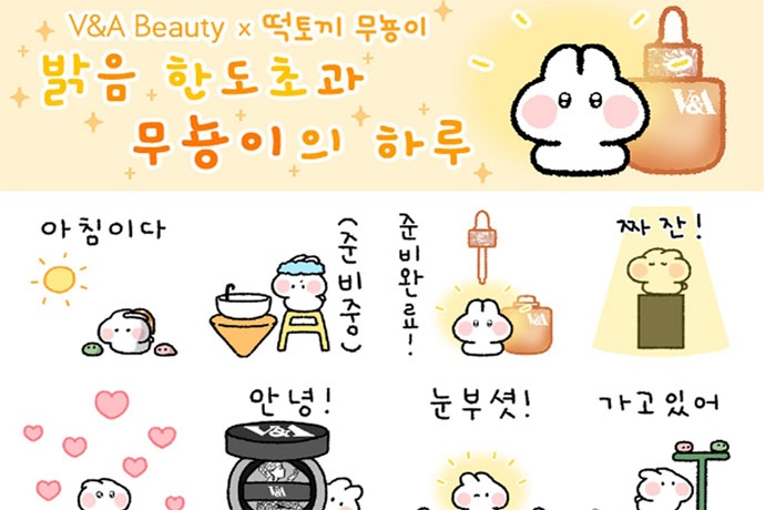힐러비(대표 이응주)는 컨템포러리 아트&뷰티 브랜드 'V&A 뷰티'(V&A Beauty)에서 인기 캐릭터 '무뇽이'와 콜라보한 한정판 카카오톡 이모티콘을 선착순 무...