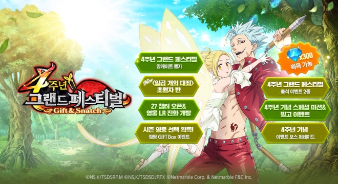 넷마블(대표 권영식, 도기욱)은 모바일 RPG '일곱 개의 대죄: GRAND CROSS(이하 일곱 개의 대죄: 그랜드 크로스 / 개발사 넷마블에프앤씨)'에 ‘4주년 그랜드 페스티벌 G...