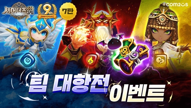 컴투스(대표 이주환)가 글로벌 히트작 '서머너즈 워: 천공의 아레나(이하 서머너즈 워)'에서 9주년 기념 팀 대항전 이벤트를 실시한다. 이벤트는 6월 11일까지 3주에 걸...