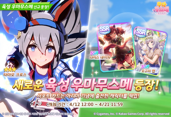 카카오게임즈(대표 조계현)는 12일, ㈜사이게임즈(대표 와타나베 코우이치)가 개발한 인기 모바일 게임 ‘우마무스메 프리티 더비’를 통해 신규 육성 우마무스메 ‘타마...