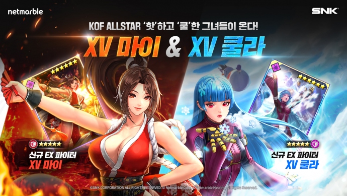 넷마블(대표 권영식, 도기욱)은 액션 RPG ‘더 킹 오브 파이터즈 올스타(이하 킹 오브 파이터 올스타)’에 신규 파이터 ‘XV 시라누이 마이’와 ‘XV 쿨라 다이아몬드’...