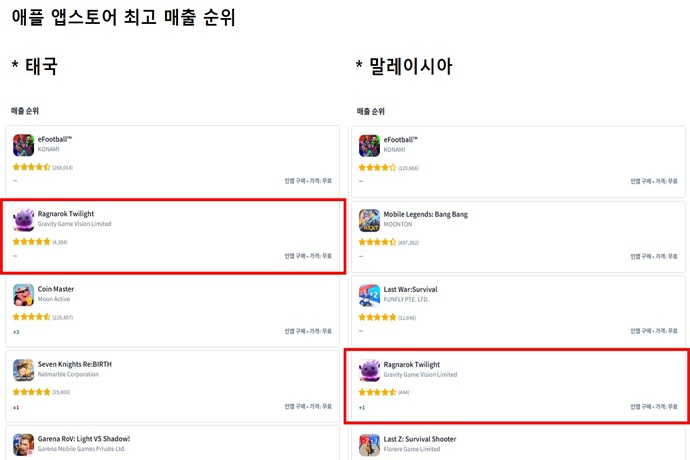 그라비티의 홍콩 지사인 그라비티 게임 비전(Gravity Game Vision, GGV)이 동남아시아 지역에 론칭한 MMORPG ‘Ragnarok: Twilight’이 론칭 초반 양대 마켓 인기 및 매...