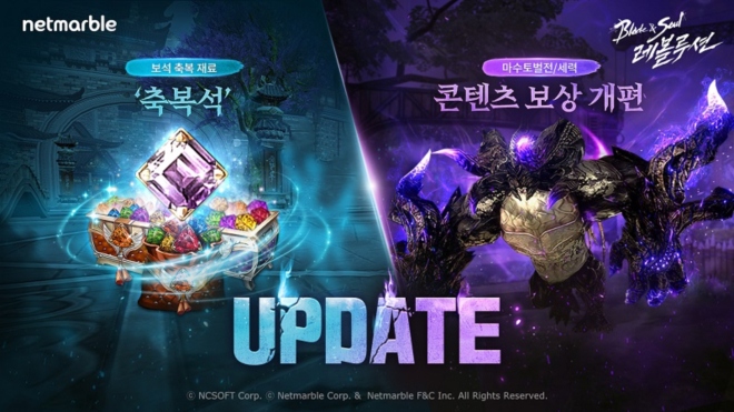 넷마블(대표 권영식, 도기욱)이 모바일 MMORPG '블레이드 & 소울 레볼루션(개발사 넷마블에프앤씨)’에 신규 콘텐츠 ‘축복석’을 추가하는 등 업데이트를 실시했다....