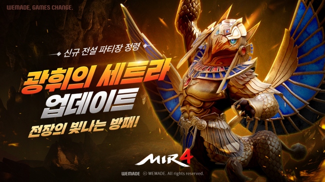 위메이드(대표 장현국)가 오늘(5일) 자사 대작 모바일 MMORPG '미르4'의 신규 전설 파티장 정령 '광휘의 세트라'를 공개했다. 새롭게 등장한 '광휘의 세트라'는 정령을 ...