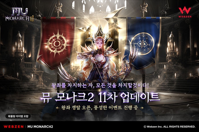 웹젠(대표 김태영)이 모바일 MMORPG ‘뮤 모나크2’에서 신규 콘텐츠 ‘왕좌 쟁탈’ 업데이트를 진행한다. ‘왕좌 쟁탈’은 회원간 대규모 대전 신규 콘텐츠다. 성벽으로...