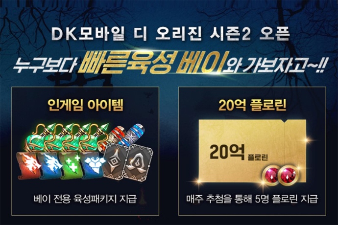 아이템베이(대표 김명배, 이대훈)는 국내 첫 시즌제 모바일게임 'DK모바일: 디 오리진(THE ORIGIN)' 시즌2 정식 오픈을 기념해 특별 프로모션을 진행한다고 밝혔다. DK...