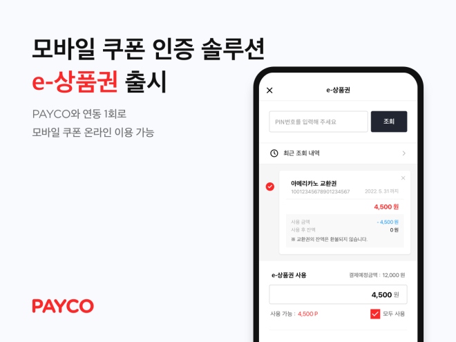 NHN페이코(대표 정연훈)가 프랜차이즈 브랜드의 모바일 쿠폰을 온라인으로 간편하게 사용할 수 있게 해주는 모바일 쿠폰 인증 솔루션 'e-상품권'을 출시했다. 페이코가 ...