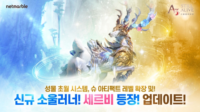 넷마블(대표 권영식, 이승원)이 모바일 최초 배틀로얄 MMORPG(다중접속역할수행게임) 'A3: 스틸얼라이브'에 신규 소울러너 '세르비'를 추가하는 등 업데이트를 실시했다....