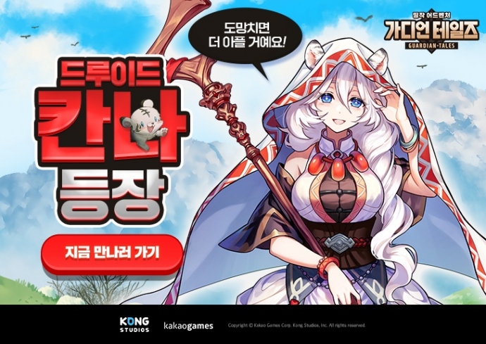 카카오게임즈(각자 대표 남궁훈, 조계현)가 22일, 미국 개발사 콩 스튜디오(대표 원(Won))가 개발한 모바일 RPG '가디언 테일즈'에 신규 영웅 '드루이드 칸나'를 추가했...