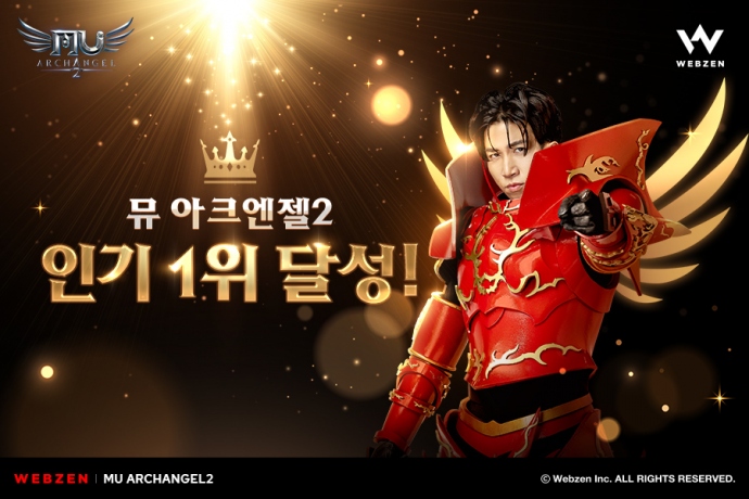 웹젠(대표 김태영)의 신작 모바일 MMORPG 'R2M'이 출시 후 국내 앱 마켓 인기순위 1위에 올랐다. 웹젠의 신작 모바일 MMORPG '뮤 아크엔젤2(MU Archangel 2)'가 9월 9일(...