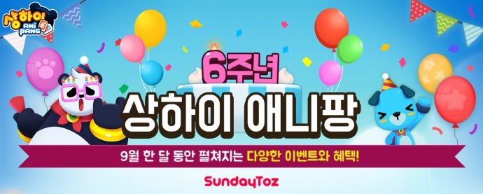 선데이토즈(대표 김정섭)가 자사 모바일 게임 '상하이 애니팡'의 서비스 6주년을 맞아 업데이트와 함께 한 달 동안 다양한 기념 이벤트를 진행한다. 9월 14일까지 진행하...
