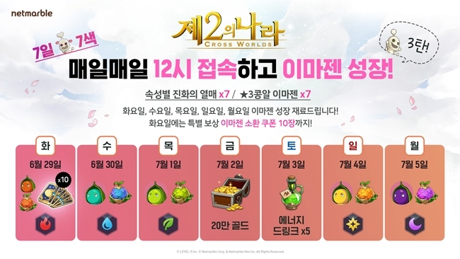 넷마블(대표 권영식, 이승원)이 감성 모험 RPG '제2의 나라: Cross Worlds'(이하 제2의 나라, 개발사 넷마블네오)에서 풍성한 혜택을 제공하는 이벤트 4종을 실시한다. ...