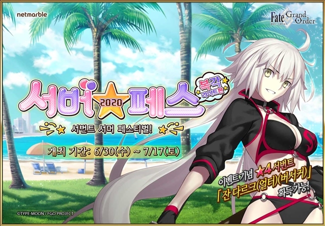 넷마블(대표 권영식, 이승원)이 모바일 RPG '페이트/그랜드 오더'에서 '복각 : 서번트 서머 페스티벌 라이트판' 의 이벤트를 7월 17일까지 실시한다. 이번 이벤트는 2020...