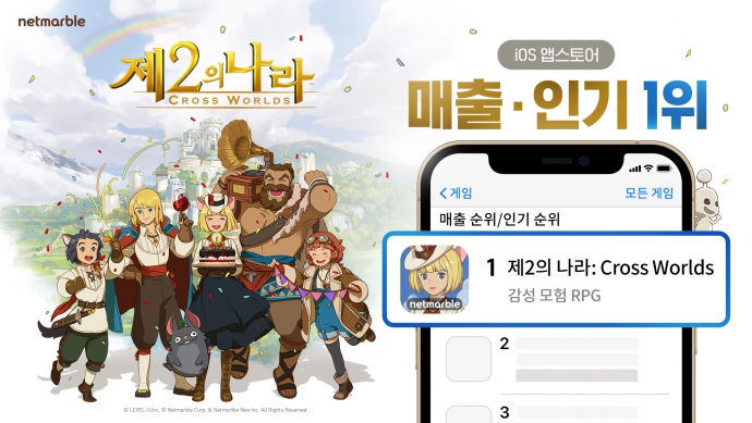 넷마블(대표 권영식, 이승원)이 오늘(10일) 출시한 감성 모험 RPG <제2의 나라: Cross Worlds>(이하 제2의 나라, 개발사 넷마블네오)가 출시 당일 한국 애플 앱스...
