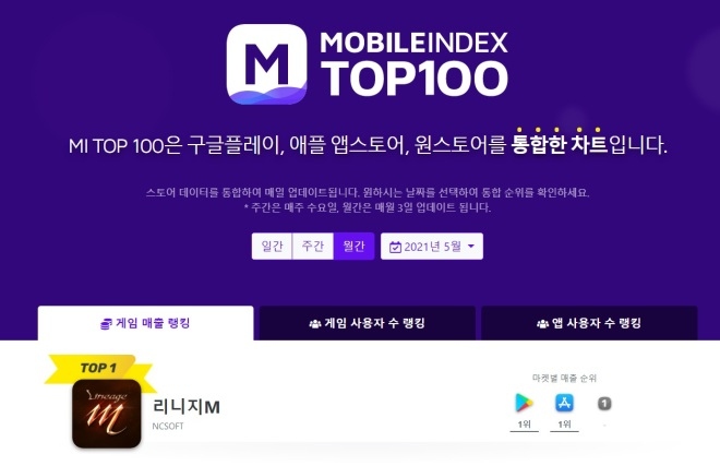 3대 모바일 앱마켓의 게임 랭킹 순위를 발표하는 아이지에이웍스의 빅데이터 분석 솔루션 모바일인덱스(MOBILEINDEX)에서 게임 매출을 기준으로 한 5월 모바일게임 랭킹 ...