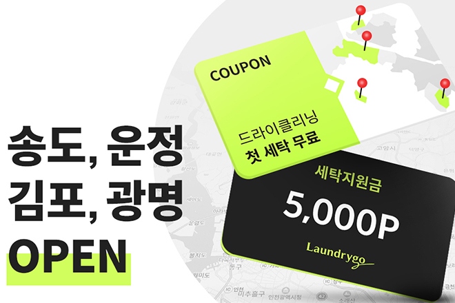의식주컴퍼니(대표 조성우)가 자사가 운영 중인 비대면 모바일 세탁 서비스 '런드리고'에서 송도국제신도시, 파주운정신도시, 광명시 및 김포시 일부지역으로 서비스 지...