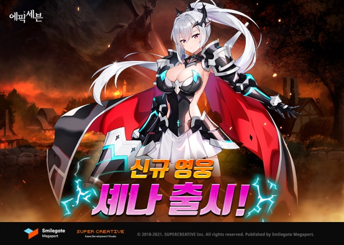 스마일게이트 메가포트(대표 장인아)가 자사에서 서비스하고 슈퍼크리에이티브(김형석, 강기현 공동대표)가 개발한 글로벌 히트 모바일 RPG '에픽세븐'에 신규 영웅 '셰...