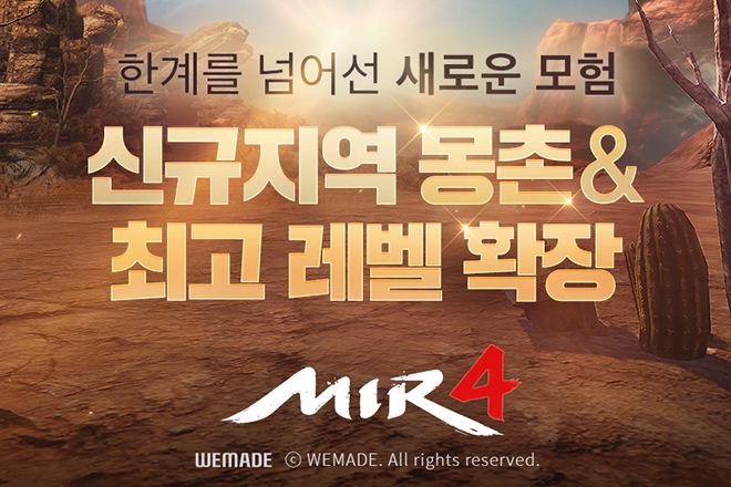 위메이드(대표 장현국)가 자사의 대작 모바일 MMORPG '미르4'에서 오늘(24일) 신규 지역 '몽촌'을 공개했다. 이번에 선보이는 신규 지역 '몽촌'은 몽촌사막과 개미굴, 사...