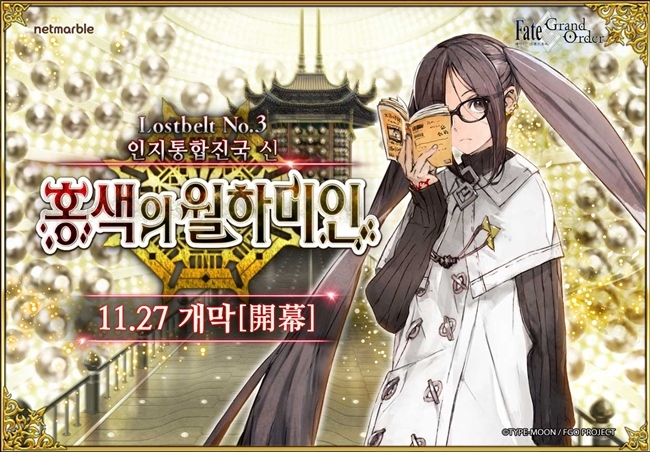 넷마블(대표 권영식, 이승원)이 모바일 RPG(역할수행게임) '페이트/그랜드 오더(Fate/Grand Order)'에 스토리 2부 3장 '인지통합진국 신 홍색의 월하미인'을 업데이트했...