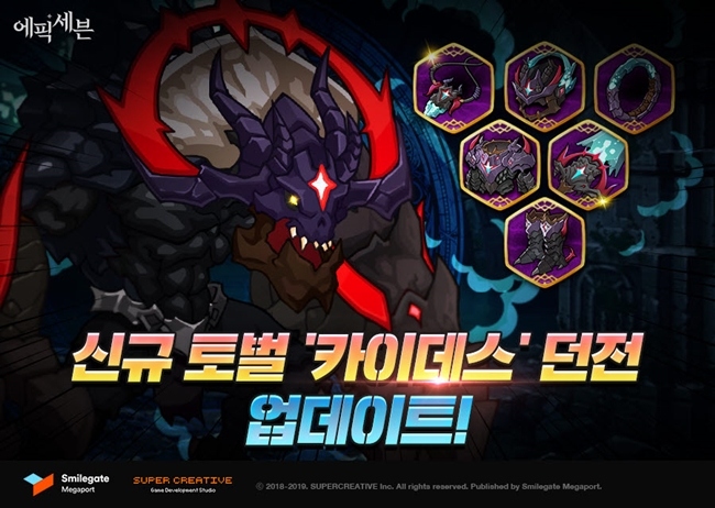 스마일게이트 메가포트(대표 장인아)가 자사가 서비스하고 슈퍼크리에이티브(김형석, 강기현 공동대표)가 개발한 모바일 턴제 RPG '에픽세븐'에 신규 토벌 콘텐츠 '카이...