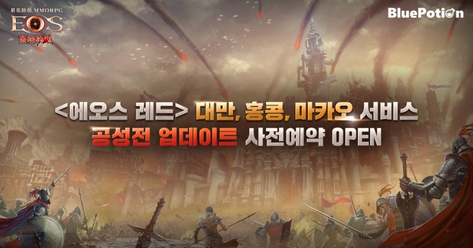 블루포션게임즈(대표 신현근)가 자사에서 직접 개발하고 서비스하는 모바일 정통 MMORPG '에오스 레드'의 첫 번째 해외 진출 지역인 대만, 홍콩, 마카오에서 공성전 업데...