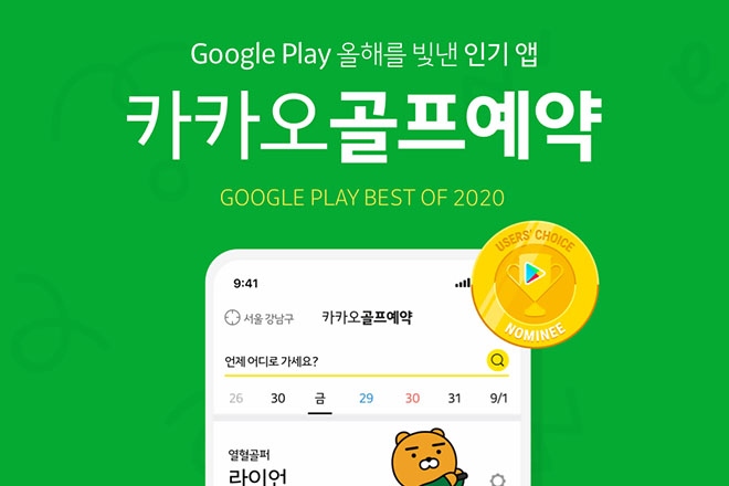 스포츠와 IT를 결합한 체감형 통합 서비스 기업 카카오 VX(대표 문태식)의 골프 예약 서비스 애플리케이션(이하 앱) '카카오골프예약'이 구글플레이가 수상하는 '2020년 ...