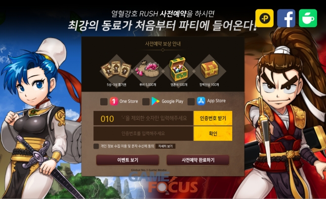 열혈강호러시의 사전예약은 정식 출시 전날인 12월 18일까지 진행된다. 안드로이드와 애플 이용자 누구나 사전예약 모집 홈페이지를 통해 신청 가능하다.