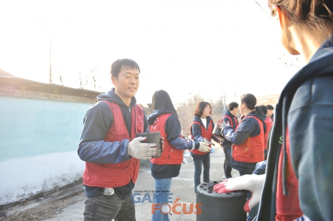 엠게임 권이형 대표를 비롯한 임직원 40명은 노원구 중계 마을 일대 독거노인과 저소득층 가정 등어려운 이웃들에게 직접 연탄을 배달하며 이웃 사랑의 온기를 전했다.