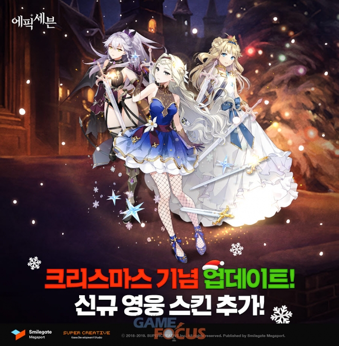 스마일게이트 메가포트(대표 장인아)가 자사가 서비스하고 슈퍼크리에이티브(김형석, 강기현 공동대표)가 개발한 모바일 턴제 RPG '에픽세븐'에서 영웅들의 외형을 꾸밀 수 있는 신규 스킨들을 추가하고 7일 동안 진행되는 크리스마스 출석 이벤트를 진행한다.