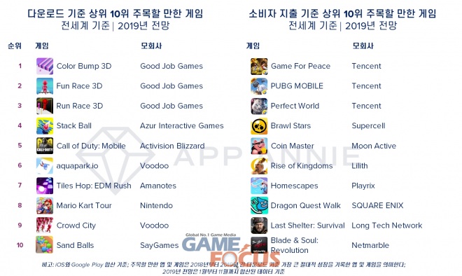 2019년 가장 성장률이 두드러진 모바일 게임앱 TOP 10 순위도 별도 발표