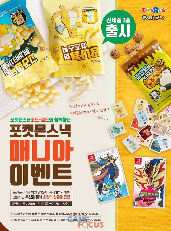 포켓몬스낵 신규 3종 출시를 기념해 '포켓몬스낵 매니아' SNS 공유 이벤트를 마련했다. 응모 방법은 포켓몬스낵에 동봉된 포켓몬 스티커를 찍은 사진을 필수 해시태그(#포켓몬스낵, #포켓몬스티커, #토이저러스)와 함께 개인 SNS에 업로드하고 해당 게시글 URL을 토이저러스 온라인몰 '포켓몬스낵 매니아' 이벤트 페이지 댓글창에 입력하면 된다.